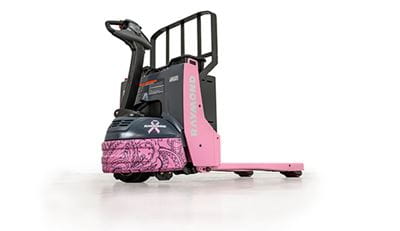 The 10 day auction will begin on Monday, October 24th at 6 a.m. PT on eBay, where participants can bid on Raymond’s pink 8210 Electric Pallet Truck. This particular model is ideal for retail store, wholesale delivery and food processing applications that require navigation in tight and/or congested areas. It also features Raymond’s exclusive Click2Creep design, which overrides the upper brake position and automatically slows the travel speed, enabling improved maneuverability and more controlled operation.